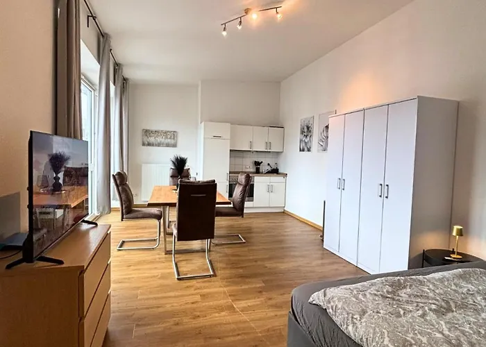 Tijdens hun verblijf in Flexi Flats Appartement Lingen van 45 m^2, kunnen gasten EmslandArena bezoeken, gelegen op 2 km verderop. Dit appartement biedt uitzicht op de straat.
